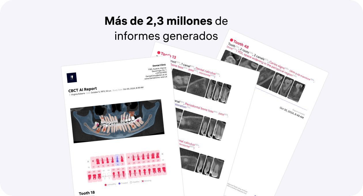 Aprovechando el poder de la IA, Diagnocat se convirtió en una de las primeras soluciones dentales en el mundo capaz de analizar imágenes dentales tanto en 2D como en 3D. Además, genera informes comprensibles para los pacientes y archivos STL, lo que permite una planificación precisa del tratamiento y mejora la comunicación con el paciente.