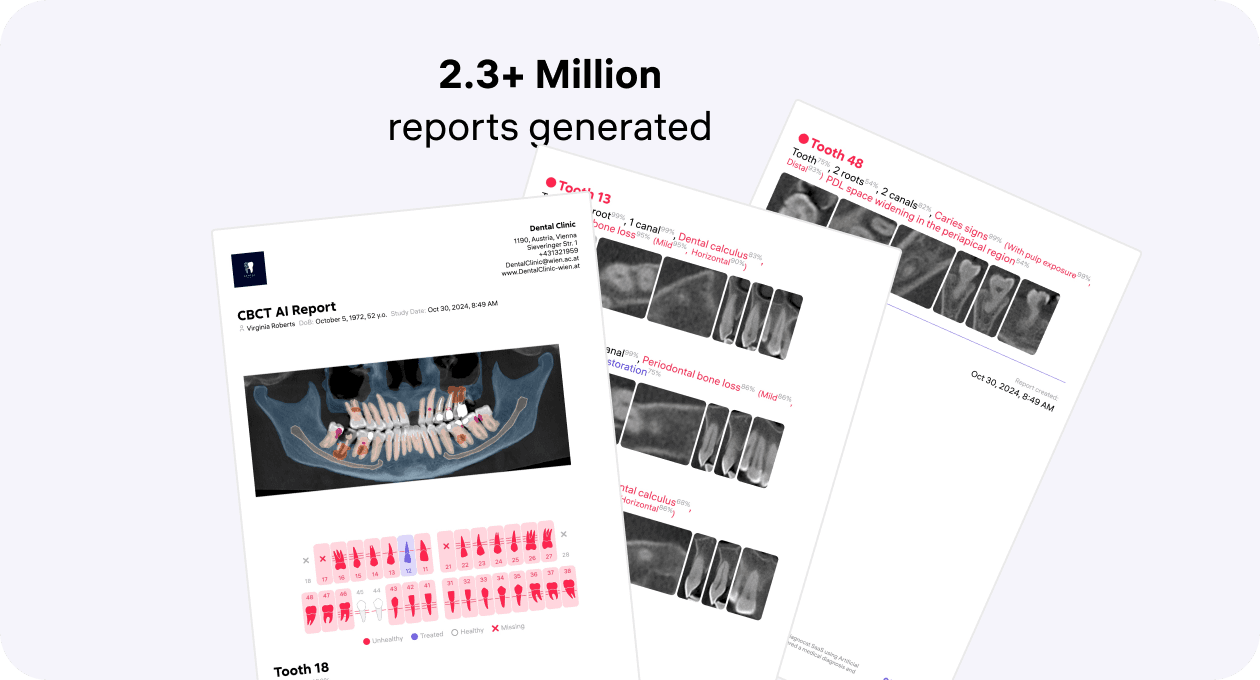 Harnessing the power of AI, Diagnocat became one of the first dental solutions in the world capable of analyzing both 2D and 3D dental images. It also generates patient-friendly reports and STL files, enabling precise treatment planning and enhancing patient communication.